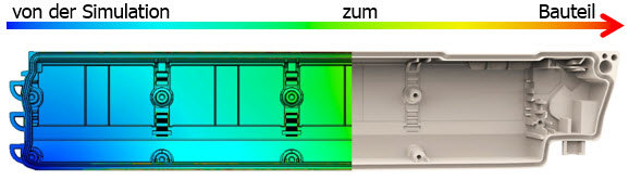 der gesamte Spritzgießprozess simulieren und entsprechend Optimieren. Das Ergebnis ist ein perfekt ausgelegtes Formteil